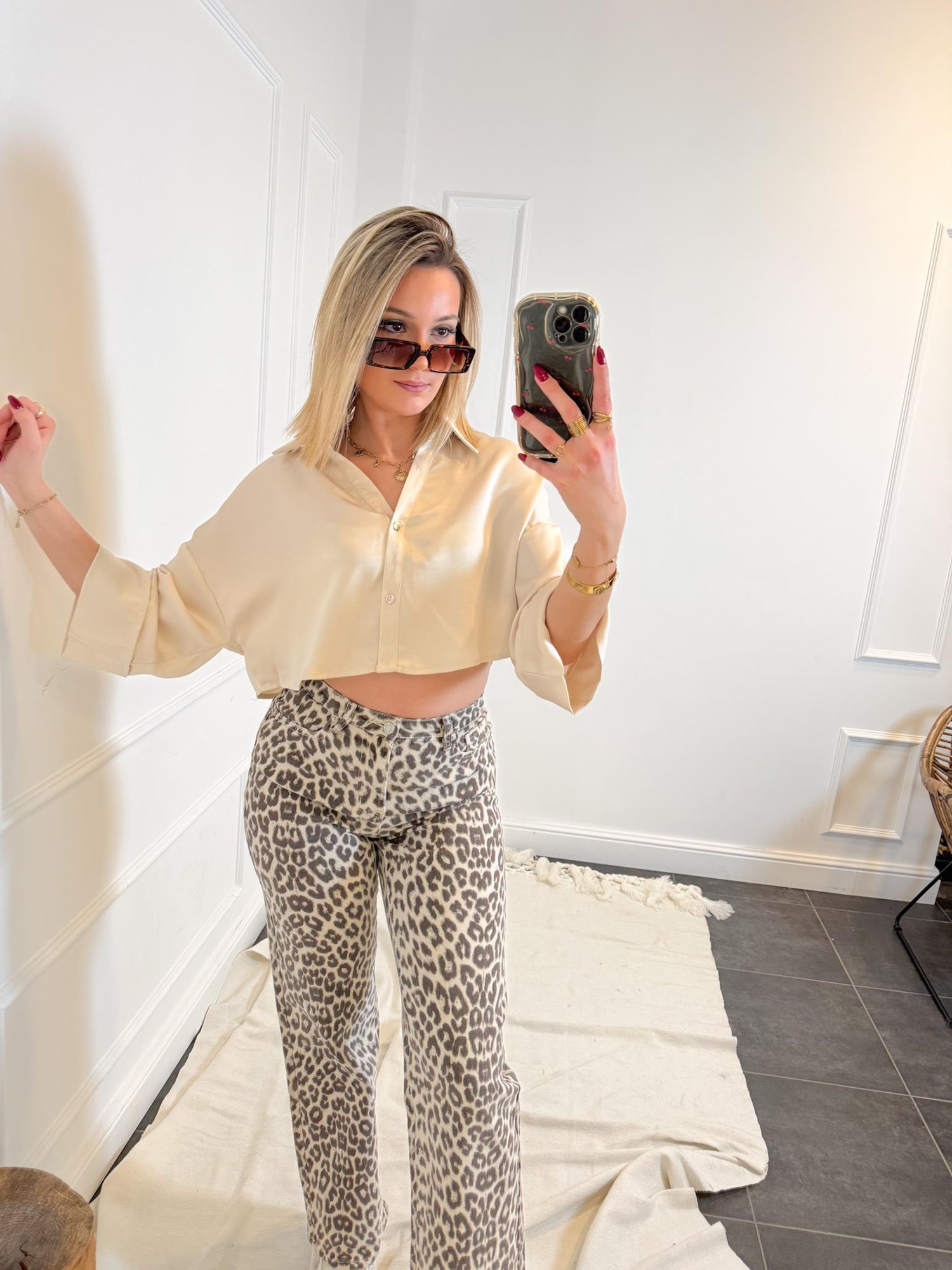 - Le mannequin mesure 170cm et porte du 36.